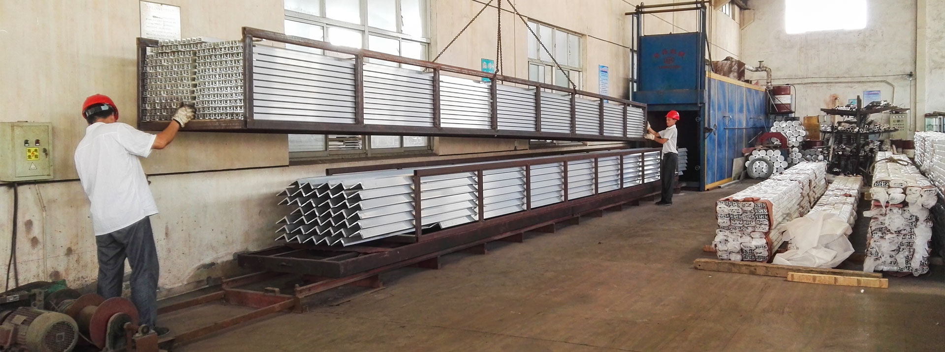 專業生產多種鋁合金型材及制品的企業,已有二十多年的經驗和歷史?,F有鋁型材擠壓設備四套,分別為1800T、1000T、630T、600T擠壓生產配套設備有10m長不銹拋丸機。6m鋁型材表面拋光機,4.5m普拉迪鋁材加工中心,多臺高精度自動切割機,雙頭轉向切割機,備有12m長時效爐。